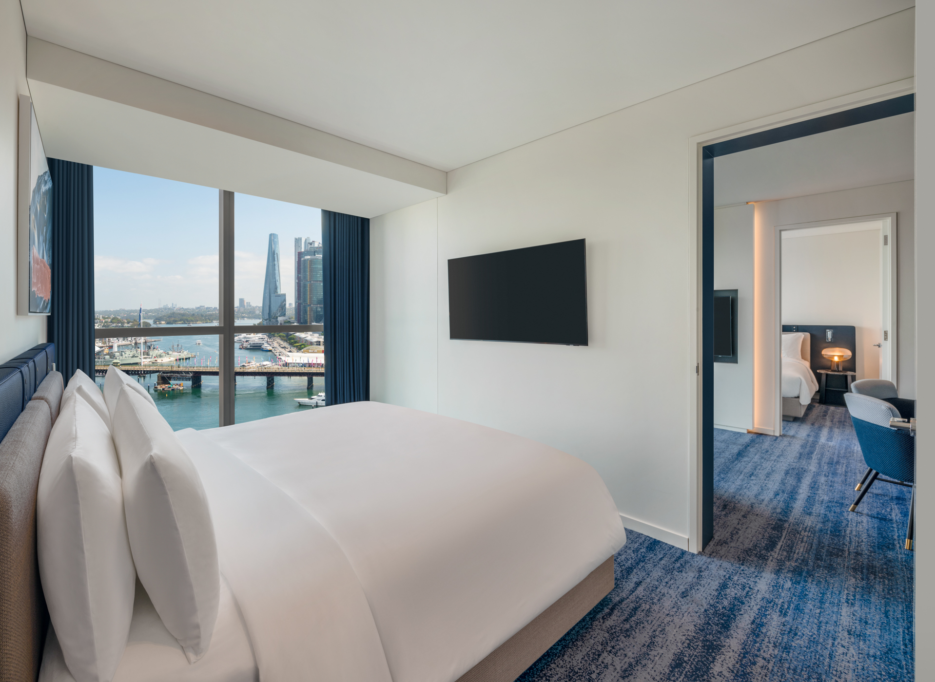 豪华双卧室单间公寓,配备 2 张特大床,可欣赏达令港景观